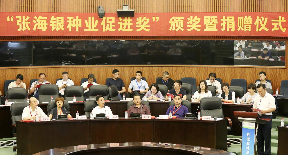 9月16日下午,基金會2018年“張海銀種業促進獎”頒獎會暨捐贈儀式在全國種子雙交會(第十一屆中國國際種業博覽會暨第十六屆全國種子信息交流與產品交易會)種業高峰論壇上舉行,來自全國各地的種業工作者約200位種業工作者參加會議。
