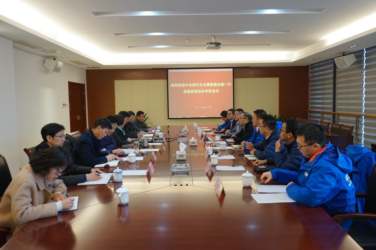 ??? 12月26日,中化農業總裁覃衡德、副總裁兼中種集團總經理宋維波、首席技術官吳一凡、MAP糧作事業部總經理應敏杰等領導蒞臨荃銀高科考察指導,荃銀高科張琴董事長等熱情接待了覃衡德總裁一行。