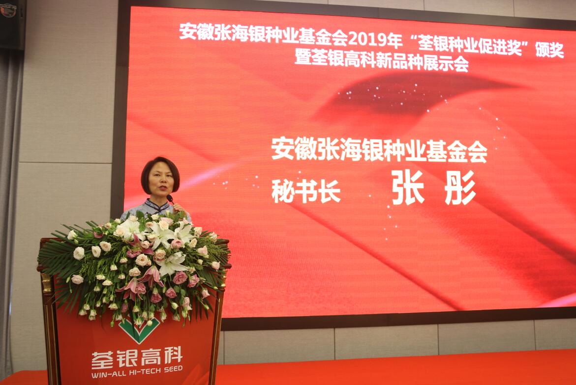 ??? 荃銀高科副董事長、總經理、基金會副理事長張琴致歡迎辭并作報告,她結合當前種業形勢,詳細介紹了荃銀高科的創新與發展,展示了荃銀高科的核心競爭力,并闡述了發起成立安徽張海銀種業基金會的初衷及在履行社會責任方面所做出的努力。會上,她向“荃銀種業促進獎”獲得者表示祝賀,并指出,“種業強國”是“中國夢”的重要組成部分,希望在座的種業人能夠矢志不渝,以終為始,為我國現代種業發展作出新的貢獻。
