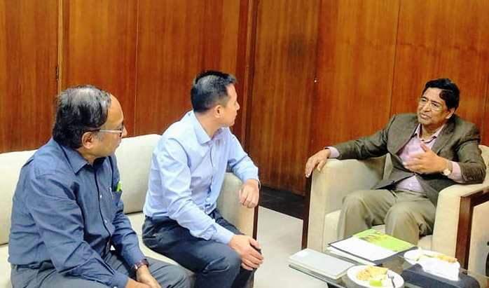 ??? 會見伊始,拉扎克部長對荃銀高科一行來訪表示熱烈歡迎,在聽取了荃銀高科過去十多年間在孟加拉推廣雜交水稻與優(yōu)質(zhì)蔬菜等農(nóng)作物良種、開展本土化品種選育和種子生產(chǎn)情況匯報(bào)后,給予高度贊賞與肯定。拉扎克部長介紹了孟加拉糧食生產(chǎn)及農(nóng)業(yè)現(xiàn)狀,農(nóng)業(yè)部當(dāng)前鼓勵農(nóng)民以非傳統(tǒng)種植代替過去的傳統(tǒng)作物種植,以獲得更高經(jīng)濟(jì)效益。他建議,荃銀高科作為中國知名種業(yè)高科技企業(yè),對亟待加強(qiáng)的孟加拉食品加工業(yè)進(jìn)行投資,該國農(nóng)業(yè)部將在企業(yè)用地、擴(kuò)大規(guī)模方面給予支持,提供保障。他表示,將對荃銀高科與孟加拉農(nóng)業(yè)部農(nóng)業(yè)發(fā)展公司在雨季水稻新品種選育及種子生產(chǎn)領(lǐng)域方面的合作給予積極支持。